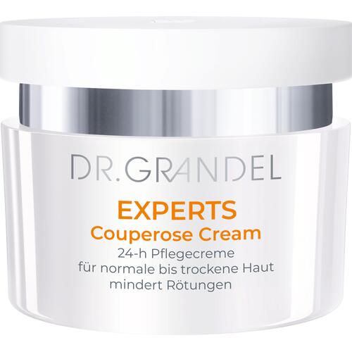 Die DR. GRANDEL Experts Couperose Cream ist eine speziell entwickelte Pflege für empfindliche Haut mit Neigung zu Rötungen oder Couperose. Die reichhaltige, beruhigende Creme unterstützt die Hautbalance, stärkt die Hautbarriere und hilft, sichtbare Rötungen zu mildern.