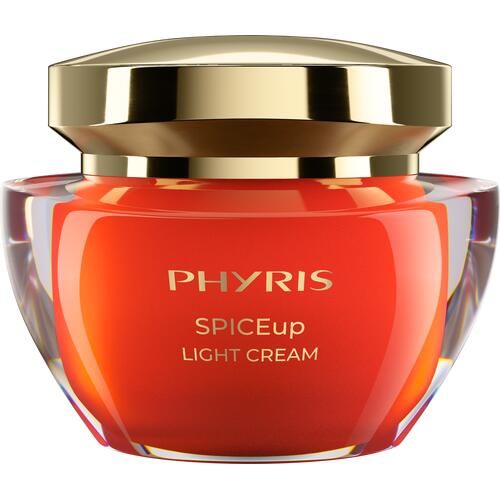 Die PHYRIS SPICEup Light Cream ist eine vitalisierende 24-Stunden-Creme mit Szechuan-Pfeffer, Currybaum- und Curcuma-Extrakt. Sie spendet intensive Feuchtigkeit, schützt die Haut und sorgt für ein frisches, geglättetes Hautbild.